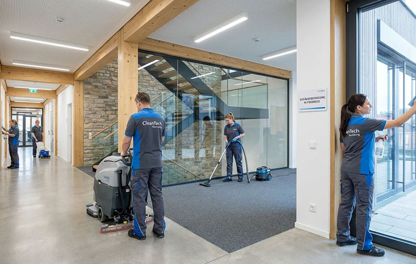 Moderne Reinigungstechnik macht etwa 10–15% der Gebäudereinigung Nürnberg Preise aus.
